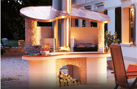 戶外燒烤壁爐可以說(shuō)是集裝飾性與功能本身于一體的后院焦點(diǎn)、經(jīng)典設(shè)計(jì)元素。煙管、壁爐本身等元器件組成。